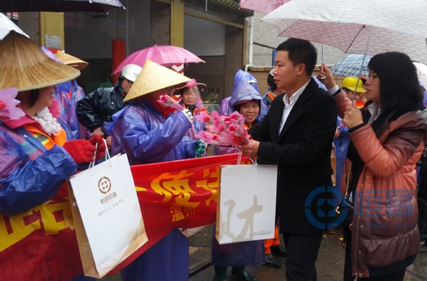 在一年一度的國(guó)際“三八”婦女節(jié)到來(lái)之際,為弘揚(yáng)恒昌企業(yè)文化,恒昌財(cái)富溫州公司全體員工于3月8日組織了一次以“關(guān)懷環(huán)衛(wèi)工人,體現(xiàn)生活”為主題的別出心裁的公益活動(dòng),活動(dòng)為廣大城市美容師送去了溫馨的節(jié)日禮物與祝福,同時(shí)也彰顯了恒昌的社會(huì)責(zé)任。