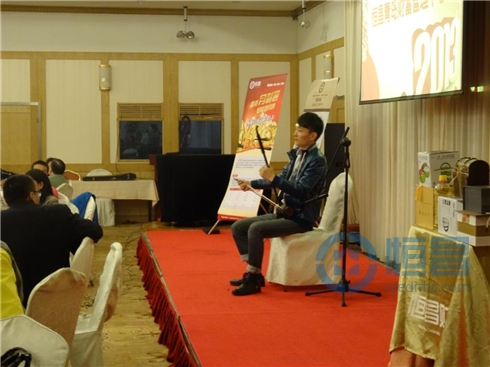 員工風(fēng)采展示:恒昌財(cái)富青島分公司員工史建英以專業(yè)的二胡表演為全場(chǎng)演奏《上海灘》《賽馬》,贏得大家的一直好評(píng)