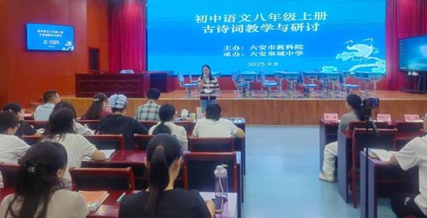 近日,六安市教科院在皋城中學(xué)光明路校區(qū)舉辦了初中語文八年級上冊詩歌教學(xué)展示與研討活動。城區(qū)部分初中百余名語文教師參與,省教科院謝發(fā)茹、合肥市教科院吳申道及蜀山區(qū)教研室劉文芬等專家蒞臨指導(dǎo)。