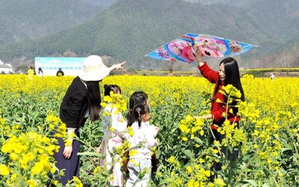 家長與文化館工作人員帶領孩子漫步花海,結合徽州本土風物,引導孩子觀察油菜花的形態與生長環境,分享春日自然知識和鄉土文化,讓孩子們領略家鄉之美,萌發熱愛自然與家鄉的情感。