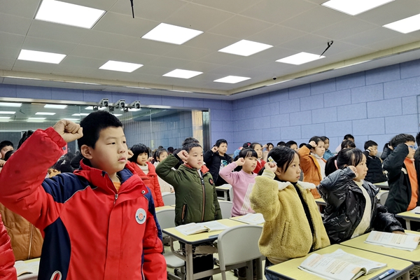 晨讀課上,各班班主任就憲法的誕生、憲法完善歷程以及在國家生活中的重大意義進行了宣講。隨后,在領誓員的帶領下,同學們精神飽滿,情緒激昂,紛紛舉手宣誓,用心體會憲法的莊嚴與神圣。“我們是新世紀的小學生,是祖國的未來,是民族的希望。為建設社會主義法治國家,我們莊嚴宣誓:……”宣誓完畢后,老師為同學們講解憲法小故事、開展憲法知識問答等,進一步增強學生的知法、守法、用法意識。五(1)班的洪丹丹同學表示:“老師的講解讓我了解了更多關于憲法的知識,我們應該努力學習憲法,做最美守法好少年,自己將積極和家人同學交流、分享憲法知識,把憲法更多地融入生活當中”。