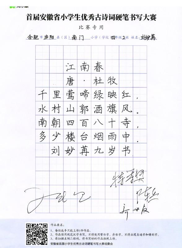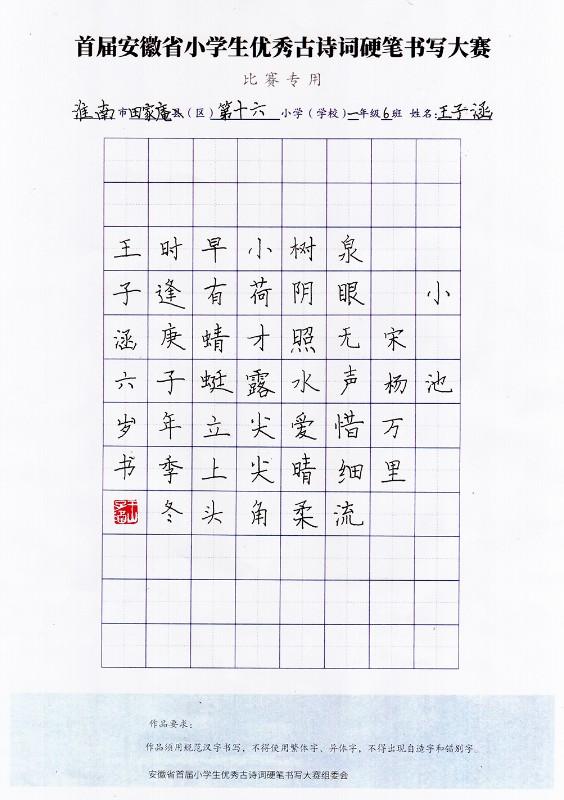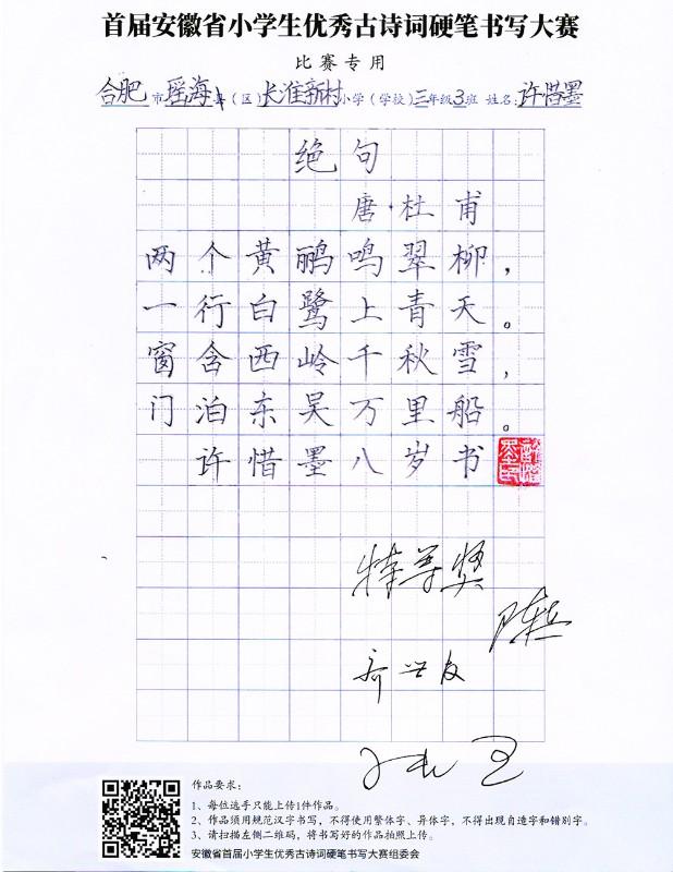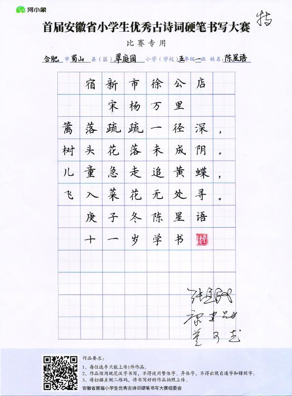 2020年首屆安徽省小學生優秀古詩詞硬筆書寫大賽獲獎作品集
